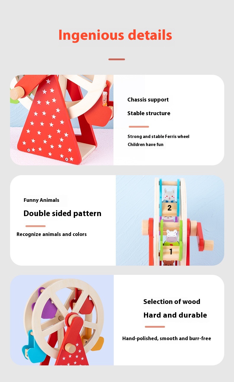 - Operation: Encourage children to turn the Ferris wheel by hand, observing the movement of the animal figures.