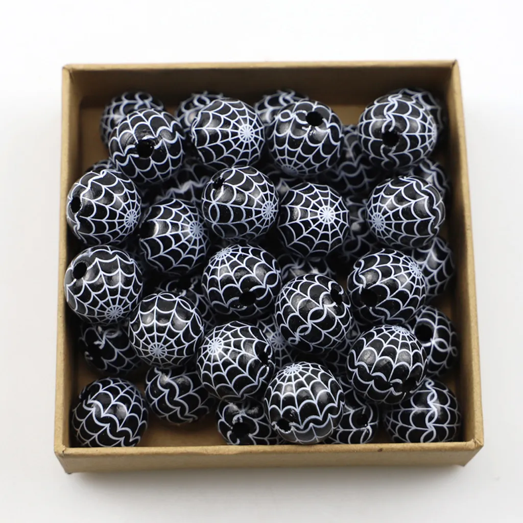 Color: Halloween Wooden Beads - White 16MM Ghost Face Single sided Printing, Halloween Wooden Beads - Black Bottom White 20MM Spider Web,