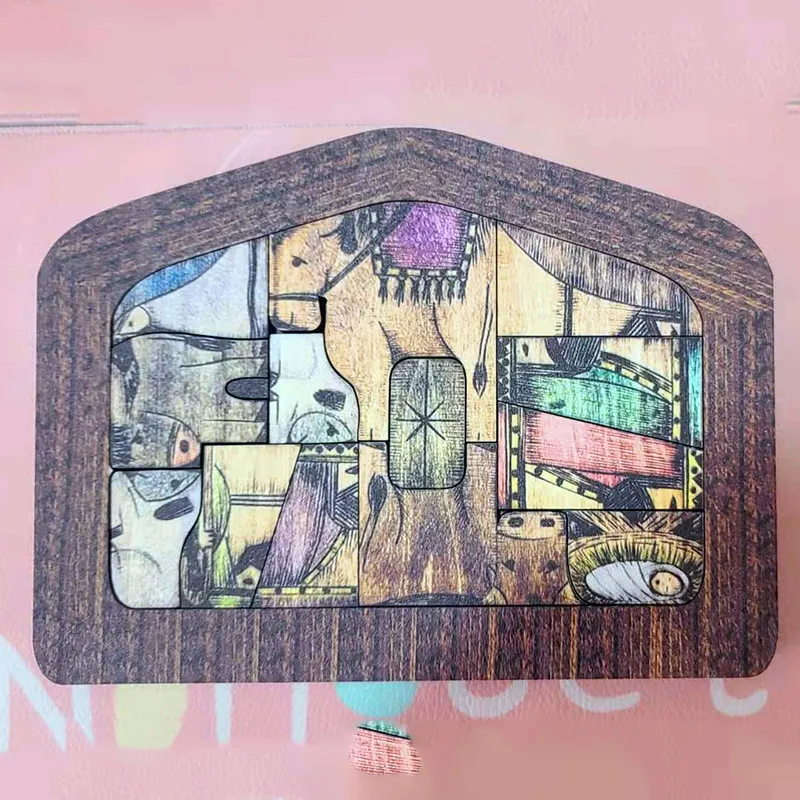 Wood firing is a traditional technique that gives the puzzle its distinct rustic charm, enhancing the natural wood grain for an authentic