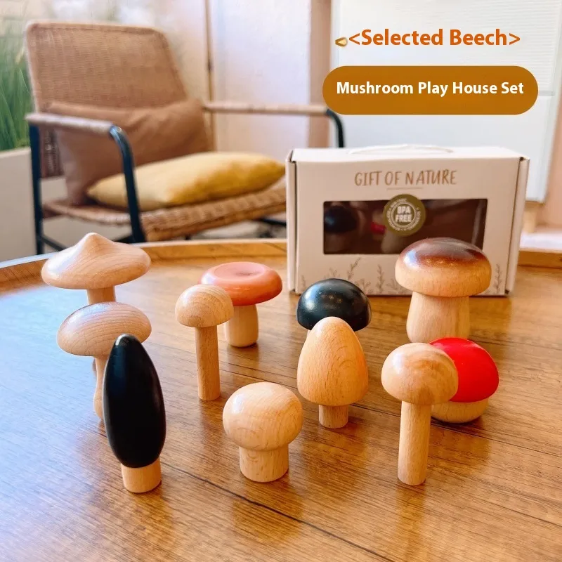 Color: wooden mushroom suit 11-piece set [gift box packaging]]