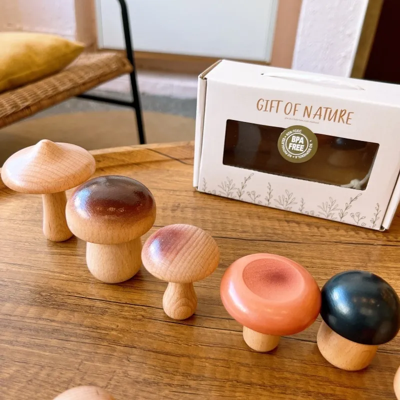 Wooden Mushroom Shape Pieces: Features mushroom-shaped blocks that can be stacked in various ways, encouraging imaginative