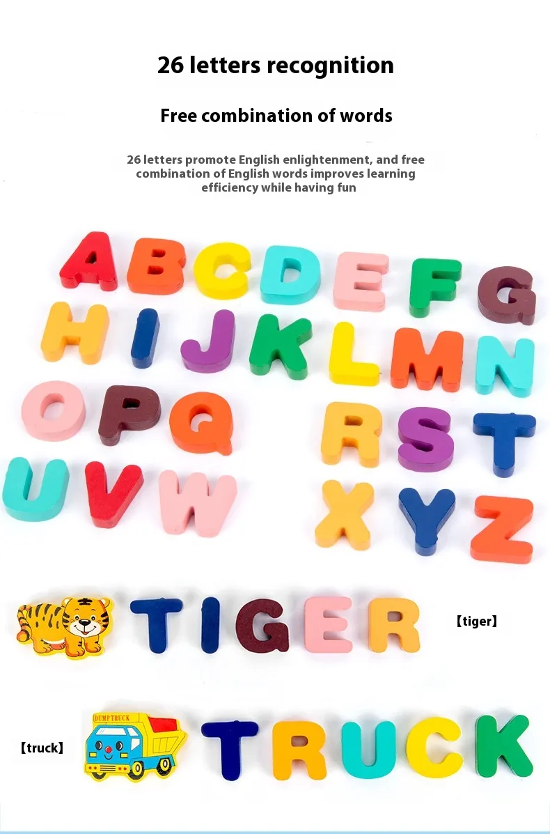 Wooden Toys Baby Cognitive Number Letter Shape Boys And Girls Early Education Puzzle