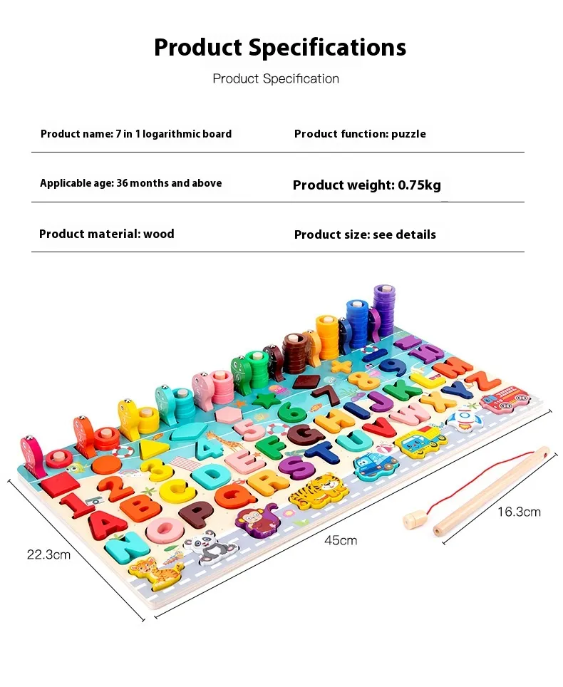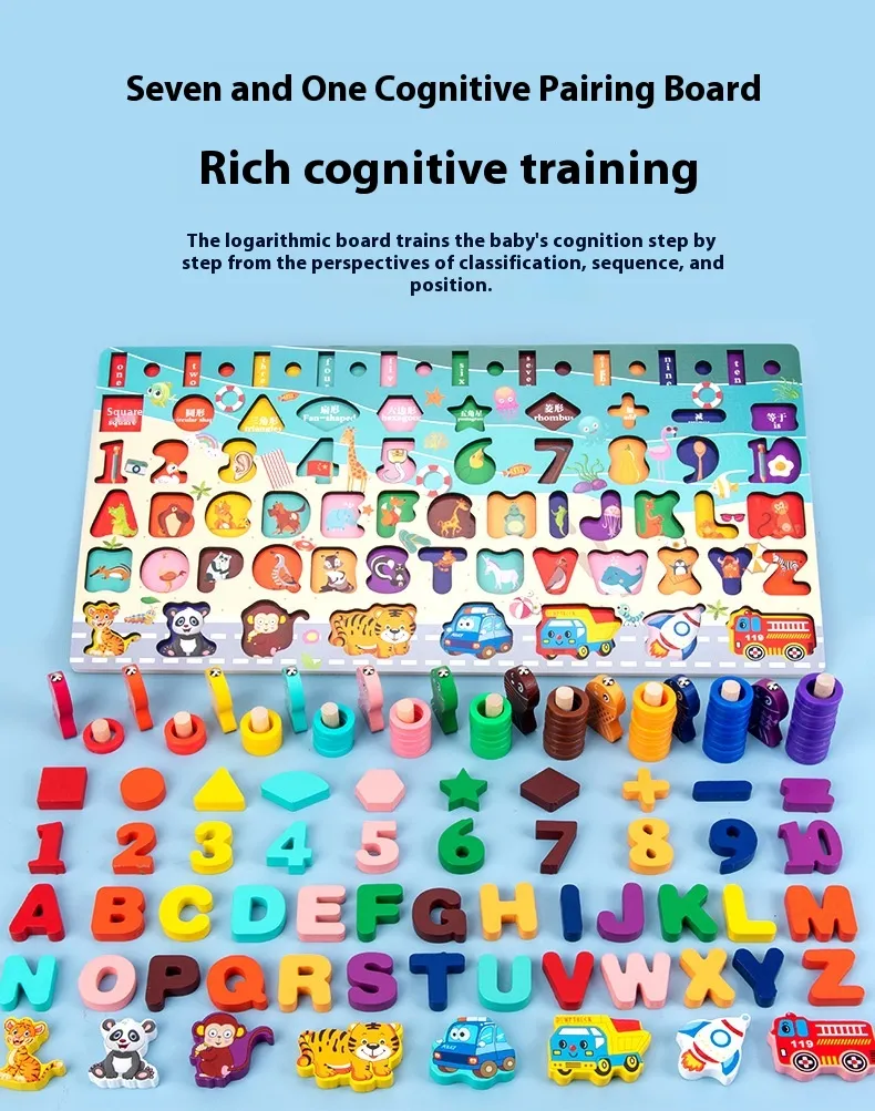 The Wooden Cognitive Puzzle is an exceptional tool for introducing young children to the world of numbers, letters, and shapes. Each piece of the puzzle represents a number, letter, or shape, helping children familiarize themselves with these concepts. The puzzle can be used to improve shape recognition, alphabet familiarity, and numeracy skills. It’s a simple and effective way to make early learning both fun and educational.