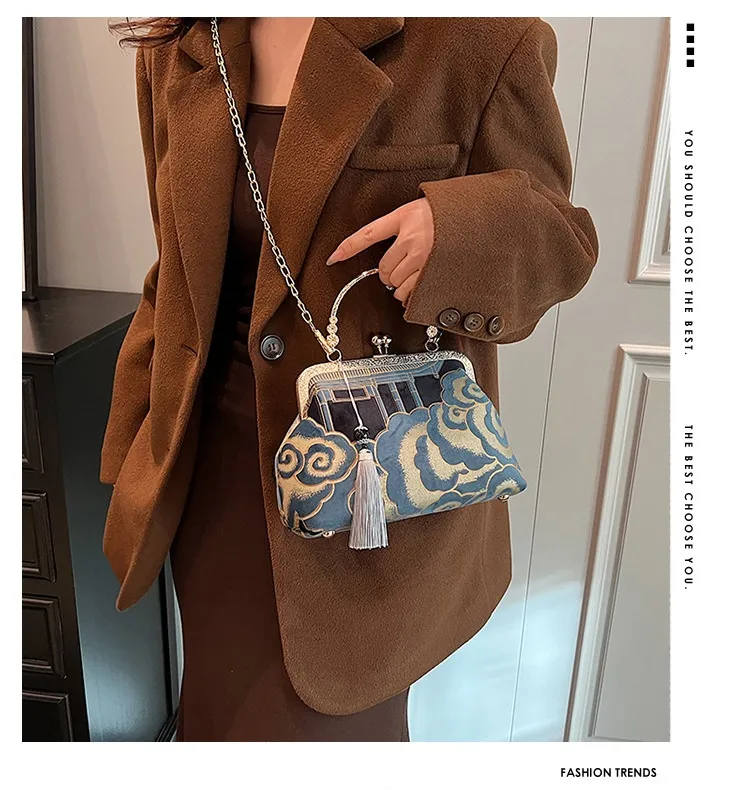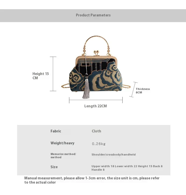 The Xiangyun Retro Chinese Style Handbag for Women is more than just an accessory—it is a beautiful symbol of good fortune and cultural heritage. With its elegant craftsmanship, luxurious materials, and timeless retro design, this handbag serves as a stylish addition to any wardrobe, offering both function and beauty. Whether for formal events, festivals, or just adding a touch of heritage to your daily life, the Xiangyun bag is sure to make a lasting impression.
