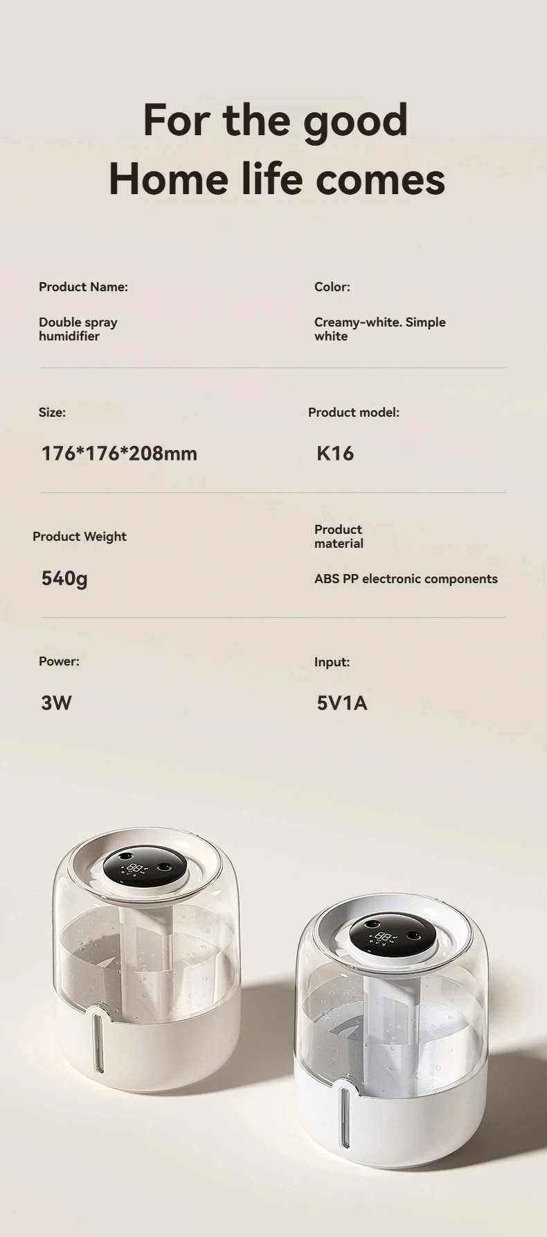The integrated digital display provides real-time information on humidity levels, water tank status, and spray modes, making it easy to monitor and adjust settings.
