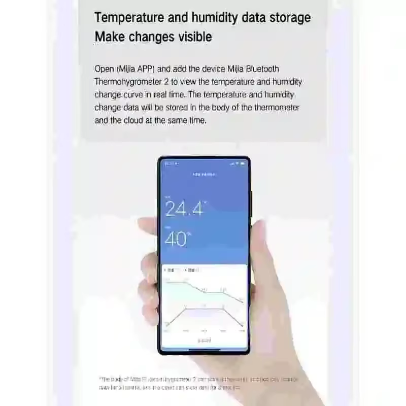 With Bluetooth connectivity, the Xiaomi Mijia Thermometer 2 syncs effortlessly with the Mijia App, allowing you to monitor and track environmental data remotely on your smartphone. Whether you're maintaining optimal moisture levels for plants, ensuring comfort in your living spaces, or regulating humidity for sensitive items, this device is an essential tool for creating a healthy environment. The app provides customizable alerts, so you’ll receive notifications when the temperature or humidity deviates from your desired range, ensuring your surroundings stay comfortable and safe.