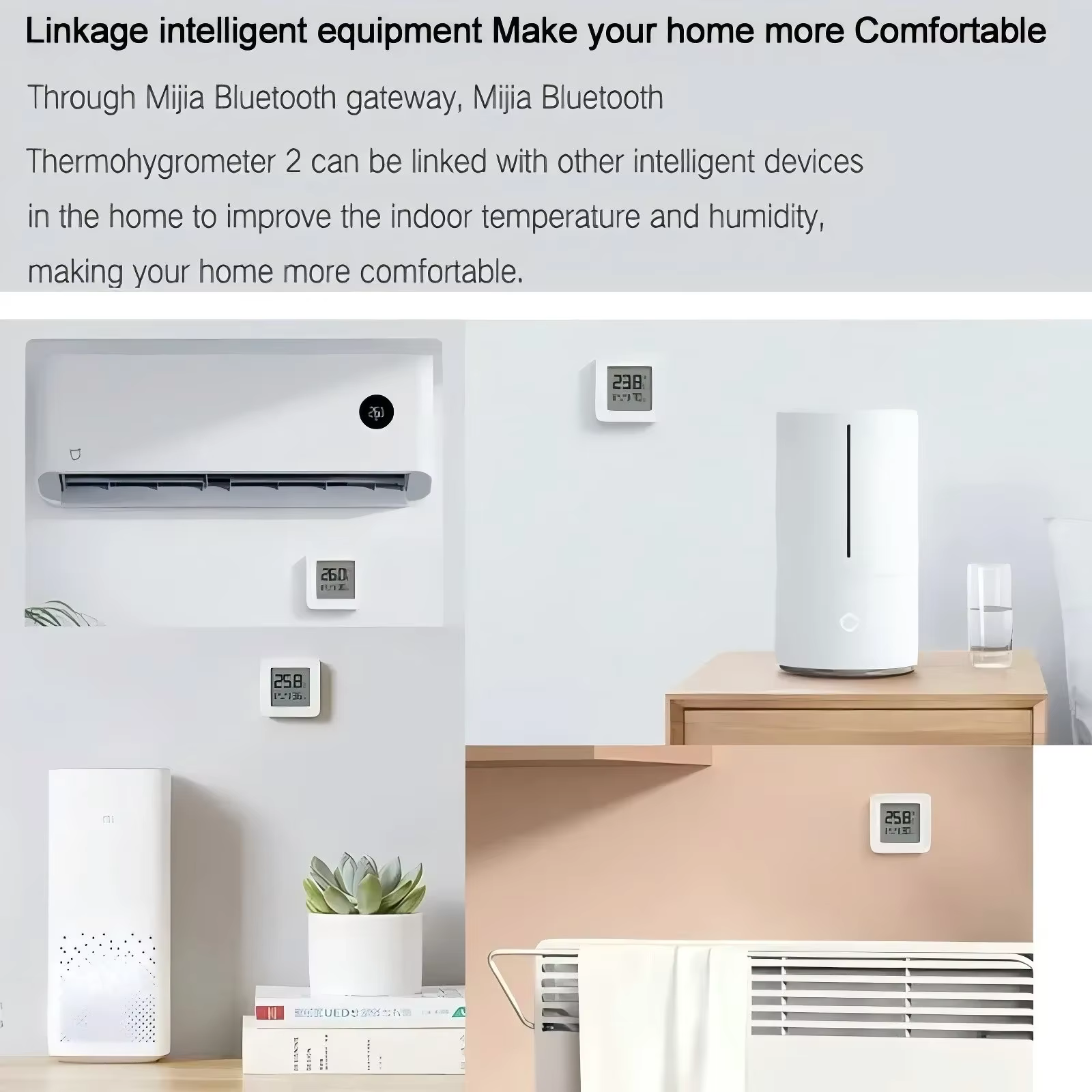 Stay informed about your environment with the Xiaomi Mijia Thermometer 2, a Bluetooth-enabled temperature and humidity sensor designed to deliver precise data at your fingertips. Equipped with a smart LCD screen, this device provides real-time readings of temperature and humidity, making it ideal for monitoring indoor climates in homes, offices, or nurseries. The compact design and minimalist aesthetic seamlessly blend into any setting, offering both practicality and style.