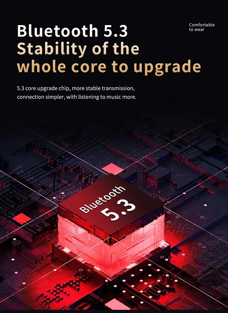 Stable full-core upgrade 5.3-core upgrade chip, more stable transmission, easier connection, and smoother calls and songs.
