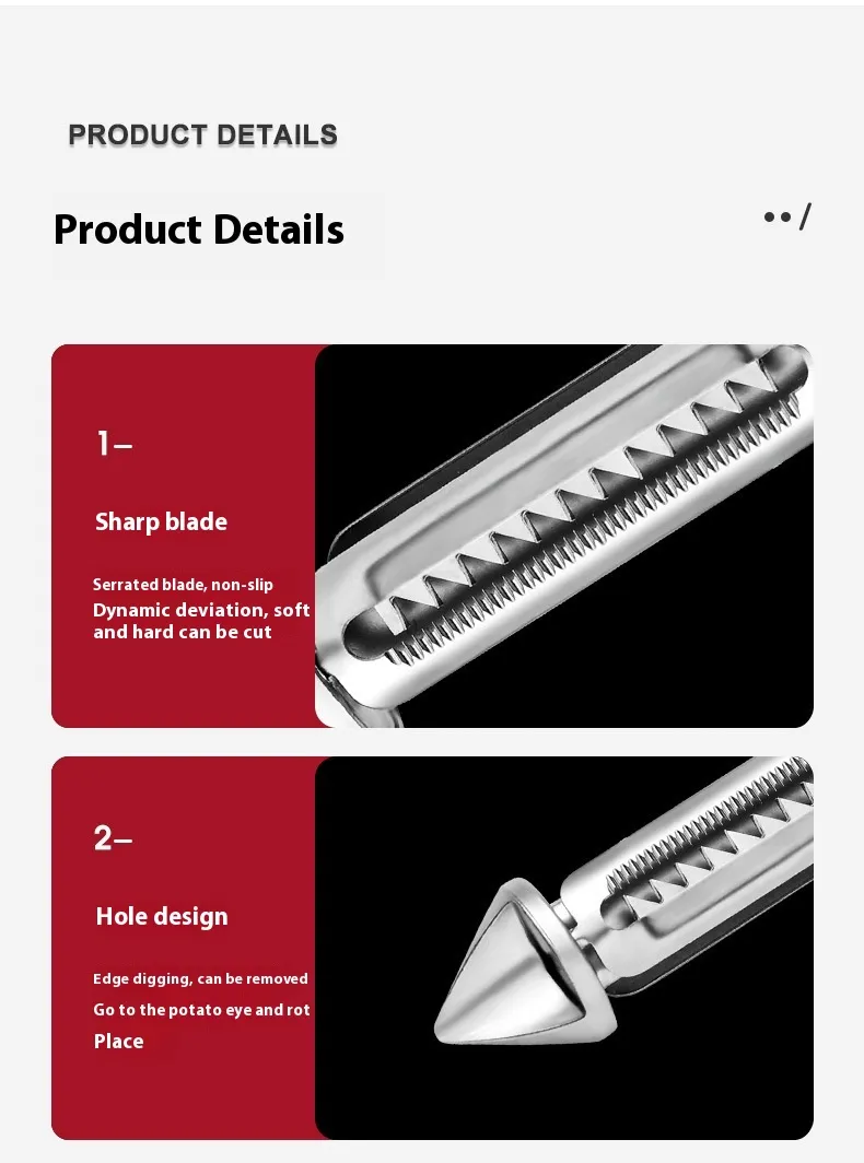 The Zinc Alloy Household Multi-functional Double-sided Peeler is a must-have tool for any kitchen. Combining durability, versatility, and ergonomic design, it offers effortless peeling and slicing for a variety of fruits and vegetables. Whether you're preparing a quick meal or tackling a large batch of produce, this peeler ensures precision, speed, and comfort with every use. Make meal prep easier and more efficient with this high-quality, multi-functional kitchen gadget.