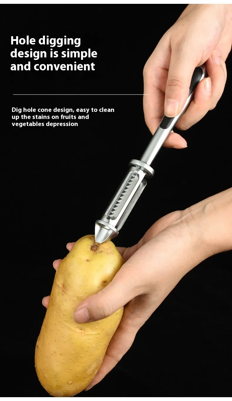 Upgrade your kitchen with the Zinc Alloy Household Multi-functional Double-sided Peeler, the perfect tool for effortless peeling and slicing. This high-quality peeler features a durable zinc alloy body and double-sided blades, making it the ideal solution for tackling a variety of fruits and vegetables with ease. Whether you're peeling potatoes, carrots, or apples, this versatile peeler ensures fast, efficient, and consistent results every time.