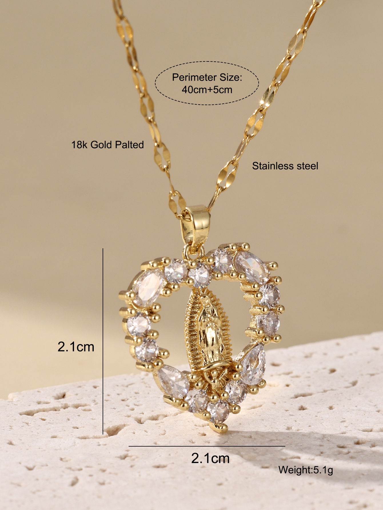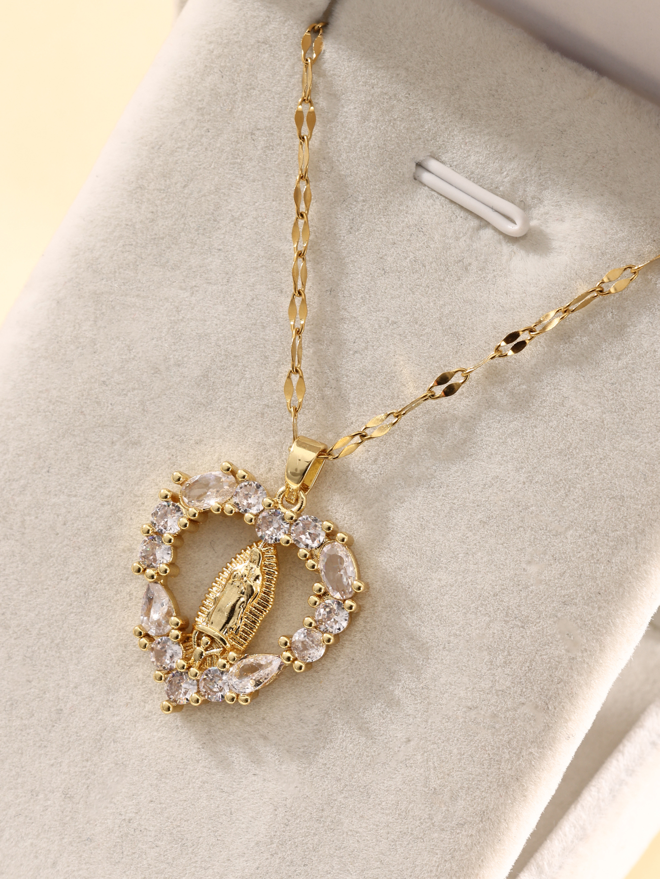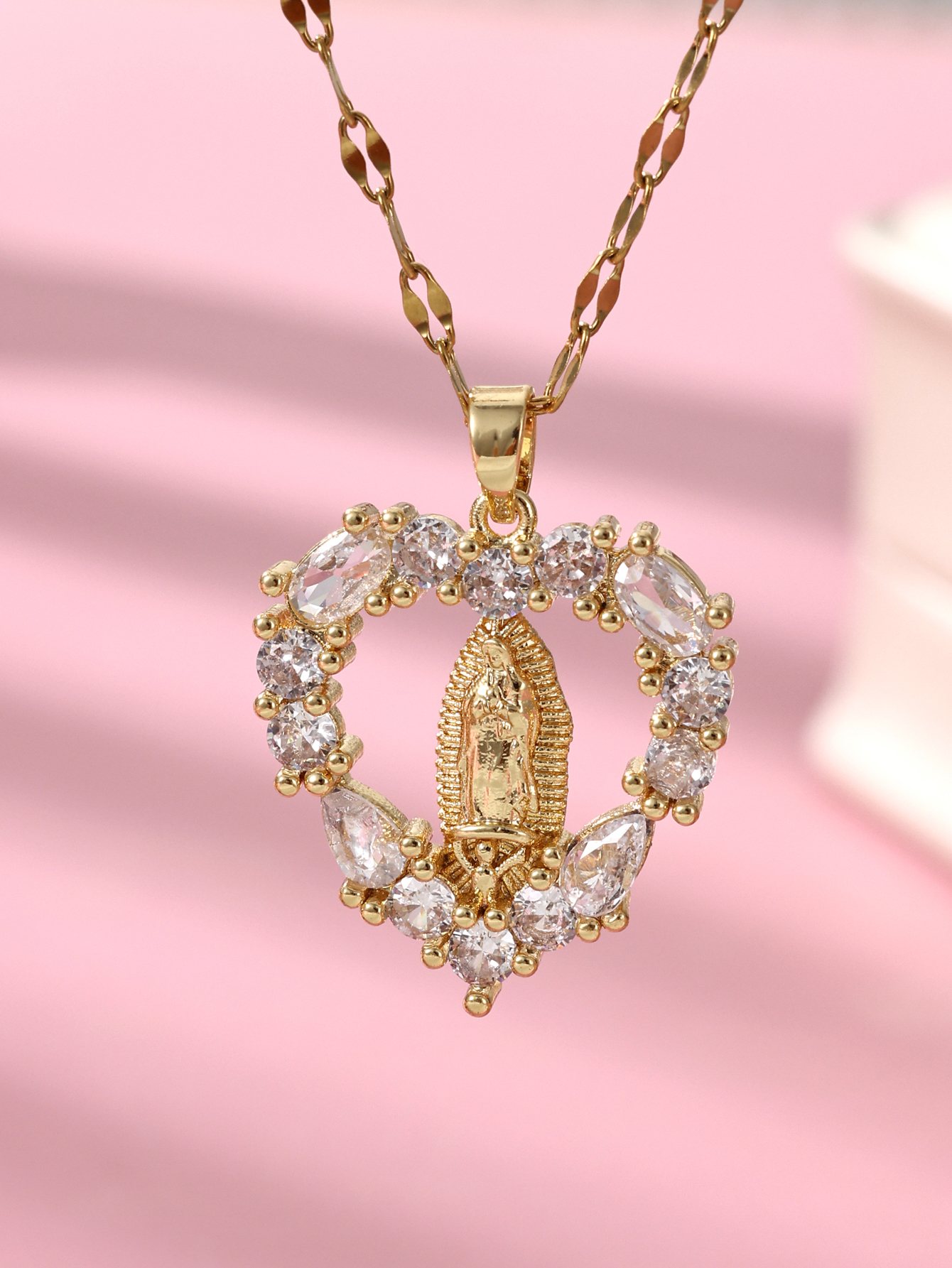 Zircon Virgin Mary Hollow Heart Pendant Necklace Women's Clavicle Chain