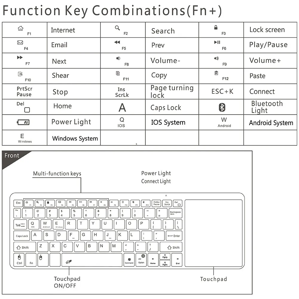 Multilingual, Ultra-Portable Keyboard with Built-in Touchpad for Smart Devices