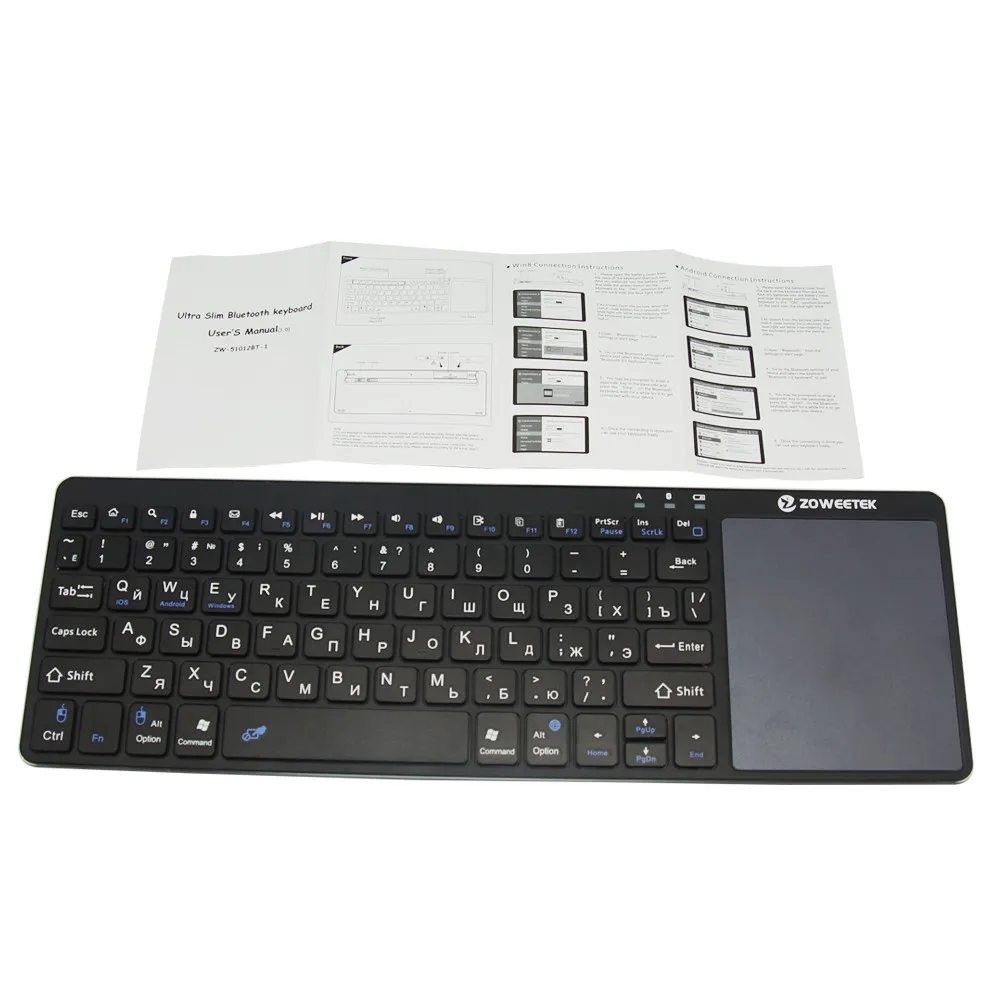 Zoweetek k12bt-1 Mini Wireless Bluetooth Keyboard Russian English Spanish Touchpad For Smart Tv Box Pc Android Phone Pad